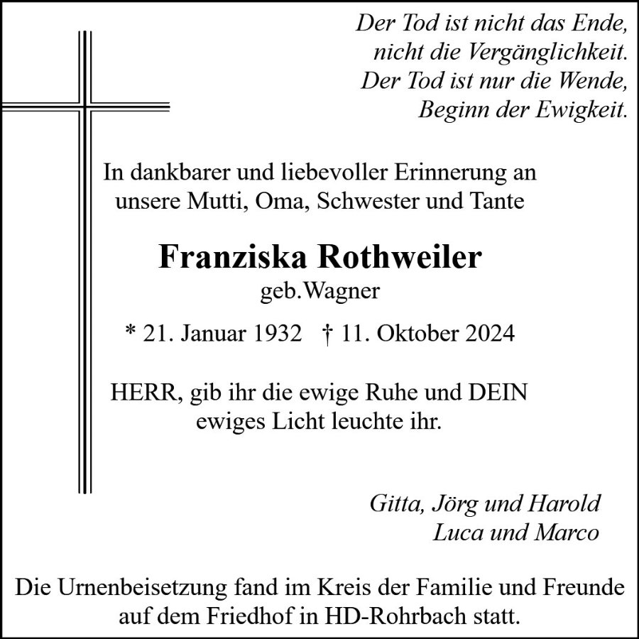 Danke, Mutti, für Deine liebende Sorge. Ruhe in Frieden, Du wirst mir fehlen ...